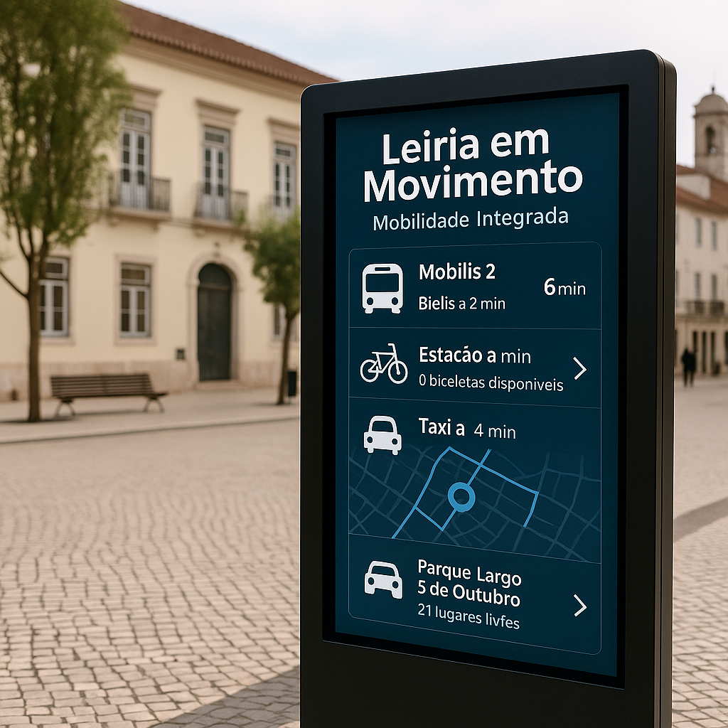 Leiria está a investir fortemente na mobilidade, com a construção do novo Terminal Intermodal. No entanto, não existe hoje nenhuma ferramenta pública e visível que unifique a informação sobre todos os meios de transporte. A experiência de deslocação continua fragmentada, confusa e pouco previsível, especialmente para quem não conhece bem a cidade ou tem limitações de acesso digital. A solução passa por instalar painéis digitais urbanos que permitam a qualquer pessoa, em tempo real: